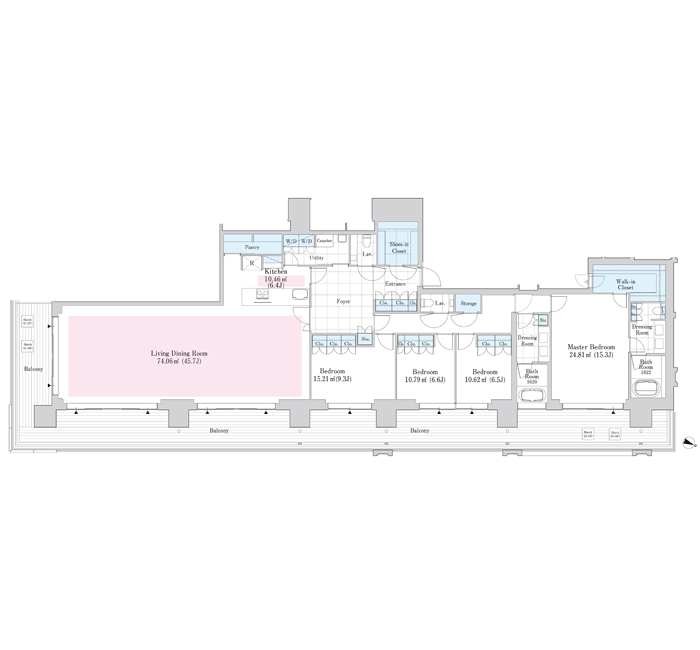 六本木グランドタワーレジデンスでは、さまざまなライフスタイルに対応する多彩な間取りプランをご用意しています。1LDKから4LDKまでの広々とした住戸が揃い、単身者やご夫婦、ファミリー層まで幅広いニーズに対応可能です。